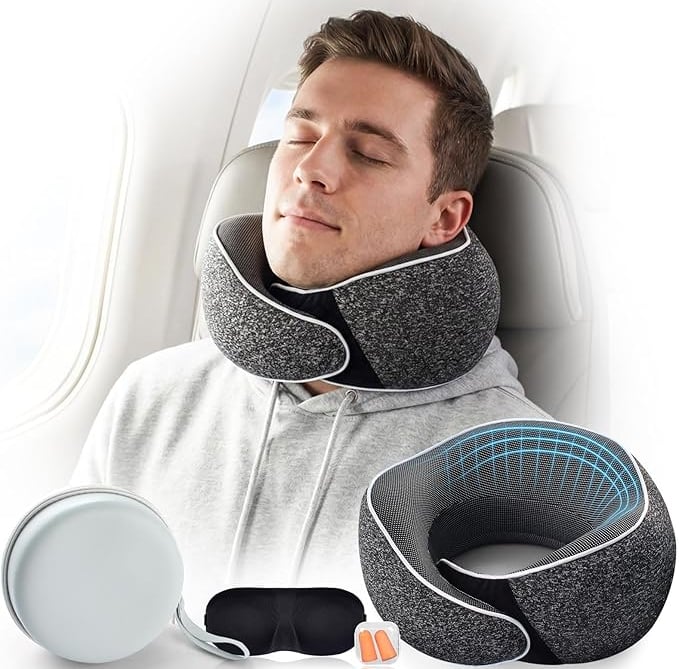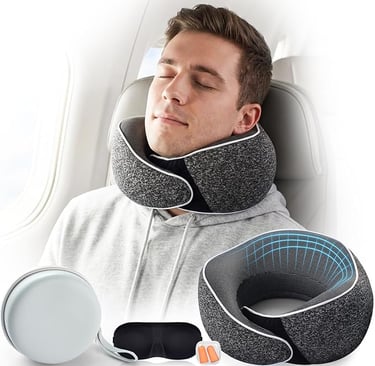 1. Almohada cervical de viaje 4 en 1 (con máscara y tapones)